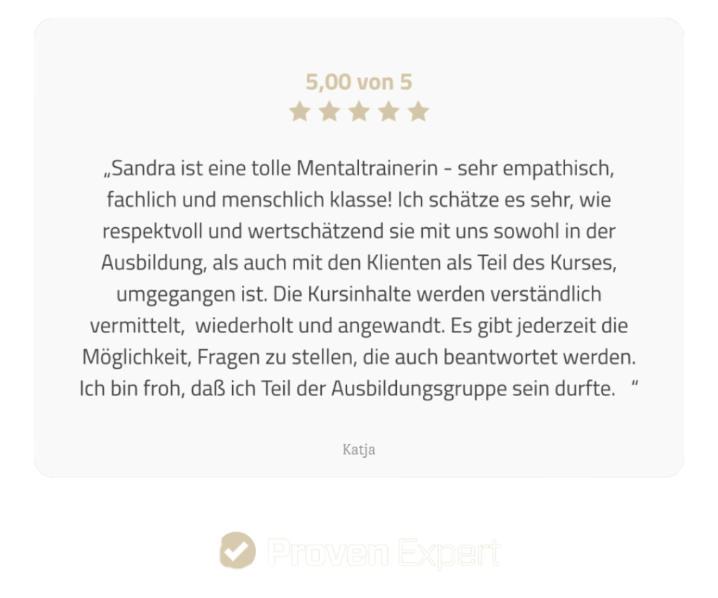 Du kannst auch jederzeit in die laufende Ausbildung einsteigen. Dank der Aufzeichnungen und unsere begleitende Facebookgruppe bist du bestens aufgehoben – egal, wann du loslegst.